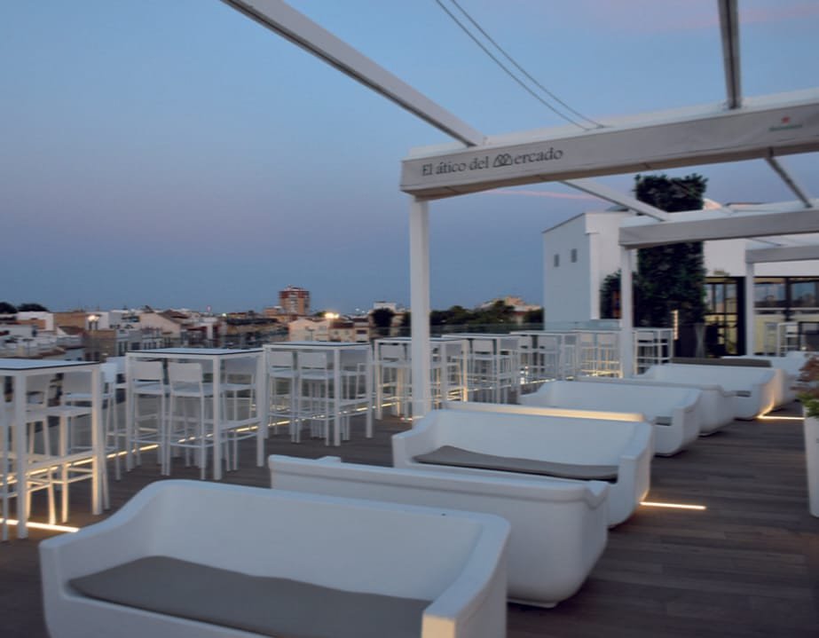 El Mercado de la Alquería cuenta, en sus más de 1.300 metros, con tres zonas totalmente definidas. En la planta baja se puede disfrutar de una completa oferta gastronómica bien en su amplio salón cuidadosamente decorado al más puro estilo urbano o en su acogedora terraza. Mientras en la planta de arriba se ha diseñado una terraza de copas con unas vistas espectaculares de la ciudad.
