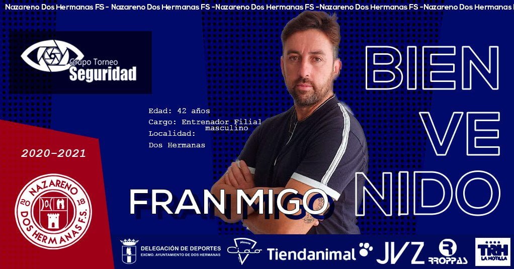 Un fichaje muy ilusionante llega para la cantera del GTS Nazareno Dos Hermanas. Se trata de Fran Migo, antiguo entrenador del primer equipo (y de otras categorías del club) quien ocupará el puesto de entrenador del filial sub-23. Así, con el fichaje de Fran Migo, el conjunto filial contará con un entrenador muy experimentado, que sin duda potenciará a la cantera nazarena. El entrenador nazareno vuelve a la que fue su casa, tras un parón en los banquillos decidido por él mismo. Migo, que cuenta con un amplio bagaje en el fútbol sala, volverá a hacerse cargo del conjunto filial de cara a la temporada 2020/2021. Una temporada que aún no tiene prevista una fecha de inicio. Fran Migro trabajará junto a Luis Hurtado y Álvaro Pascuali, actuales directores de la cantera nazarena.