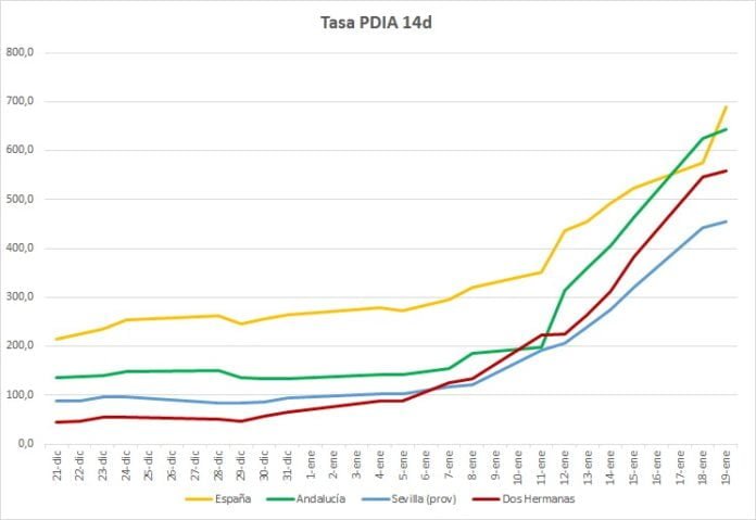 Los datos publicados por la Junta de Andalucía hoy miércoles 20 de enero sobre Dos Hermanas son los siguientes: