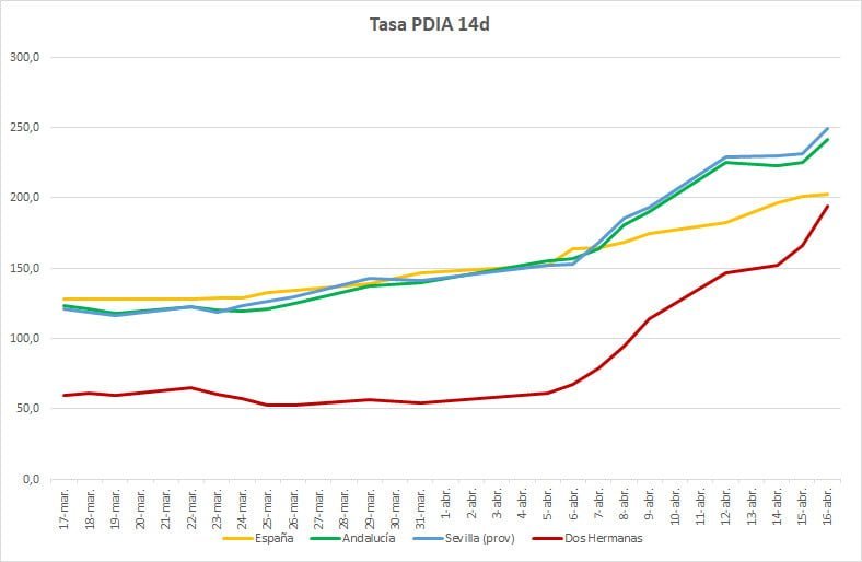 Los datos publicados por la Junta de Andalucía hoy lunes 19 de abril sobre Dos Hermanas son los siguientes: