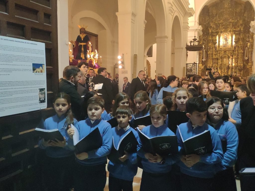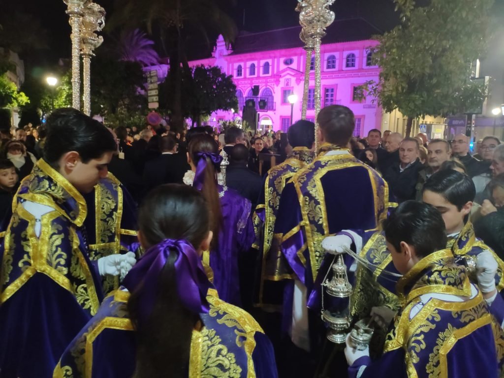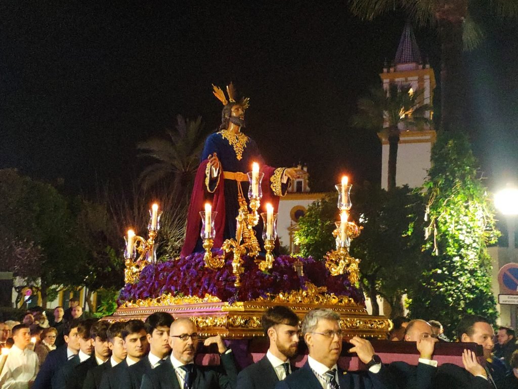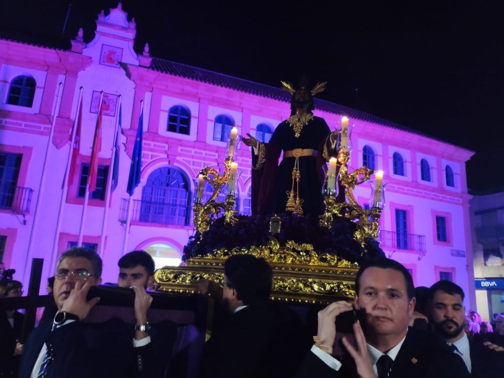 Portado por los hermanos costaleros de Oración en el Huerto, el Cristo salió de la Parroquia de Santa María Magdalena sobre las 21:00 horas, estando acompañado musicalmente por un trío de capilla y los cantos de la Escolanía del Colegio Nuestra Señora de la Compasión, con su directora, Rosana Martínez Arana a la cabeza