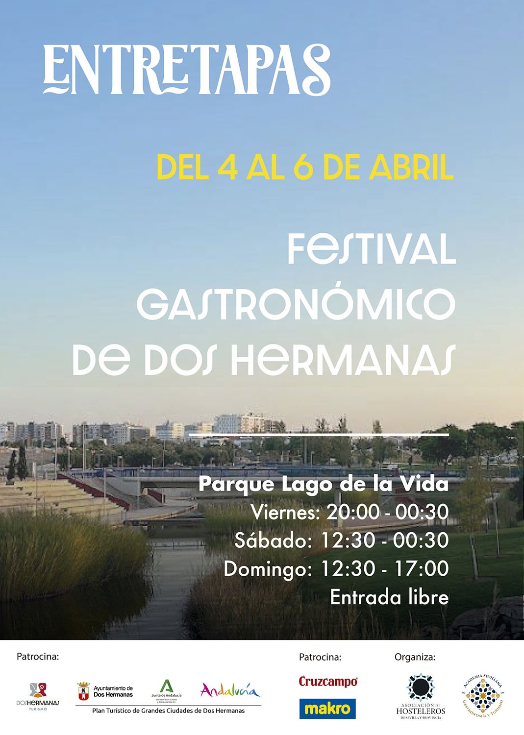 Dos Hermanas se convertirá en el epicentro de la gastronomía andaluza con la celebración de Entretapas, un evento que tendrá lugar del día 4 al 6 de abril en el Parque Lago de la Vida, en Entrenúcleos. Este festival gastronómico, de la mano de la Academia Sevillana de Gastronomía y Turismo y la Asociación de Hostelería de Sevilla y Provincia, y patrocinado por el Ayuntamiento en el marco del Plan de Turismo de Grandes Ciudades de Dos Hermanas, ofrecerá una experiencia única para los y las amantes de la tapas, música y ocio al aire libre.