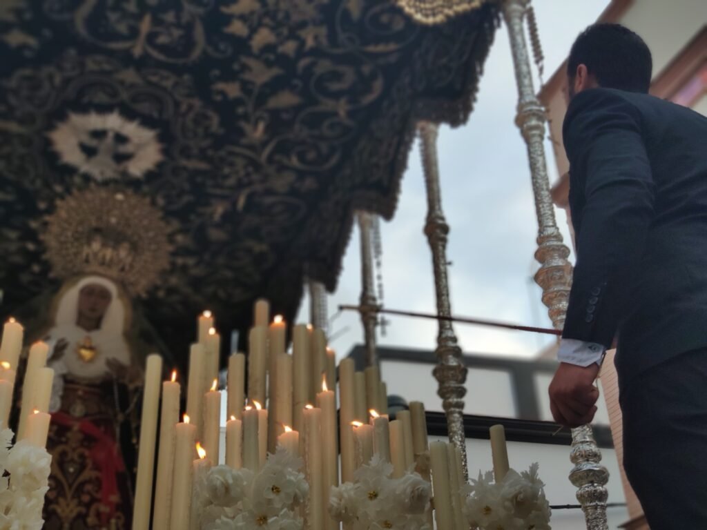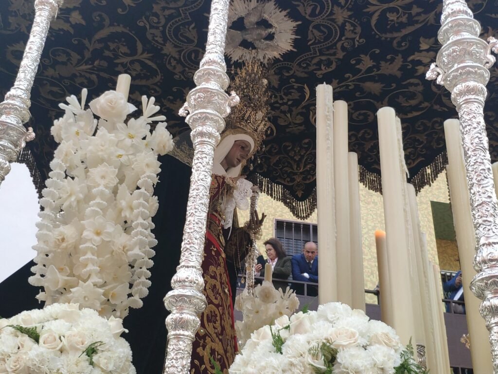 También era novedad musical tras el palio de Nuestra Señora de los Dolores los sones de la Banda de Música Ciudad de Dos Hermanas. El paso lucía un elegantísimo exorno floral blanco a base de rosas, claveles, fresias y esparragueras. La dolorosa también portaba en su mano el pañuelo del COF Dos Hermanas y prendida en su saya la Medalla de Andalucía que recibió el pasado 28 de febrero el humorista Manu Sánchez, hermano de esta hermandad y que forma parte del cuerpo de ciriales del paso de misterio.