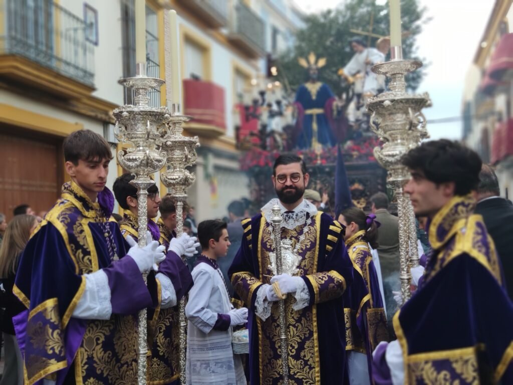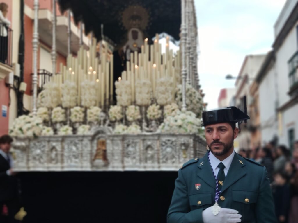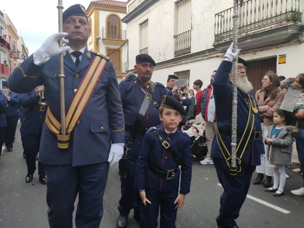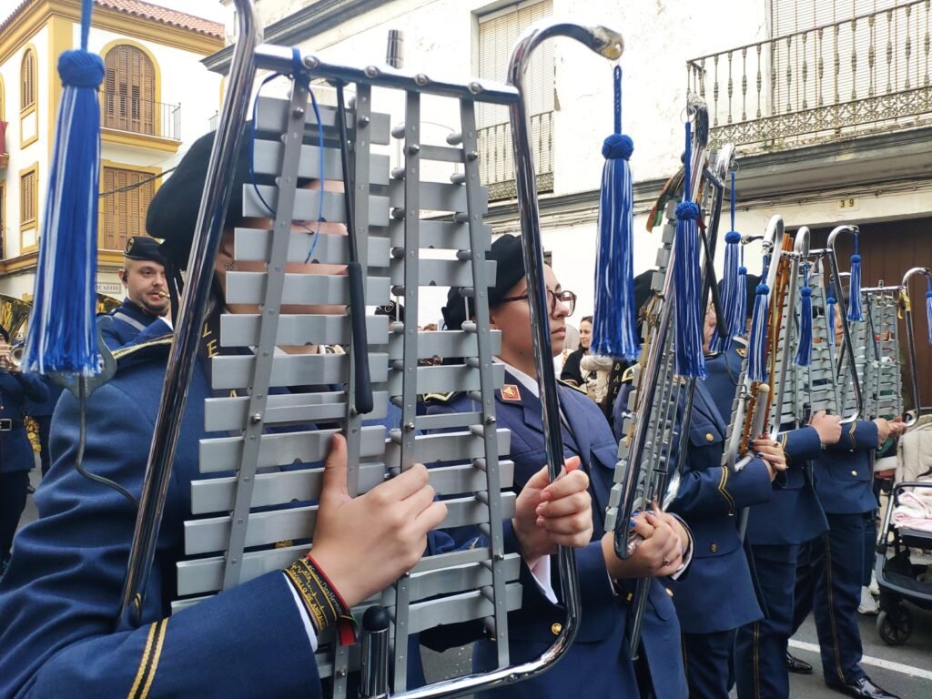 Este Miércoles Santo fue de estreno musical para la cofradía de Oración. Tras el misterio, sonaba por primera vez la Agrupación Musical Nuestra Señora de Valme, que estuvo acompañada por una representación de la madre de las agrupaciones musicales, Santa María Magdalena de Arahal, que recibió recientemente la bandera de Andalucía por su contribución al mundo de las artes. Sus banderines procesionaron unidos y sus liras sonaron juntas en esta jornada.