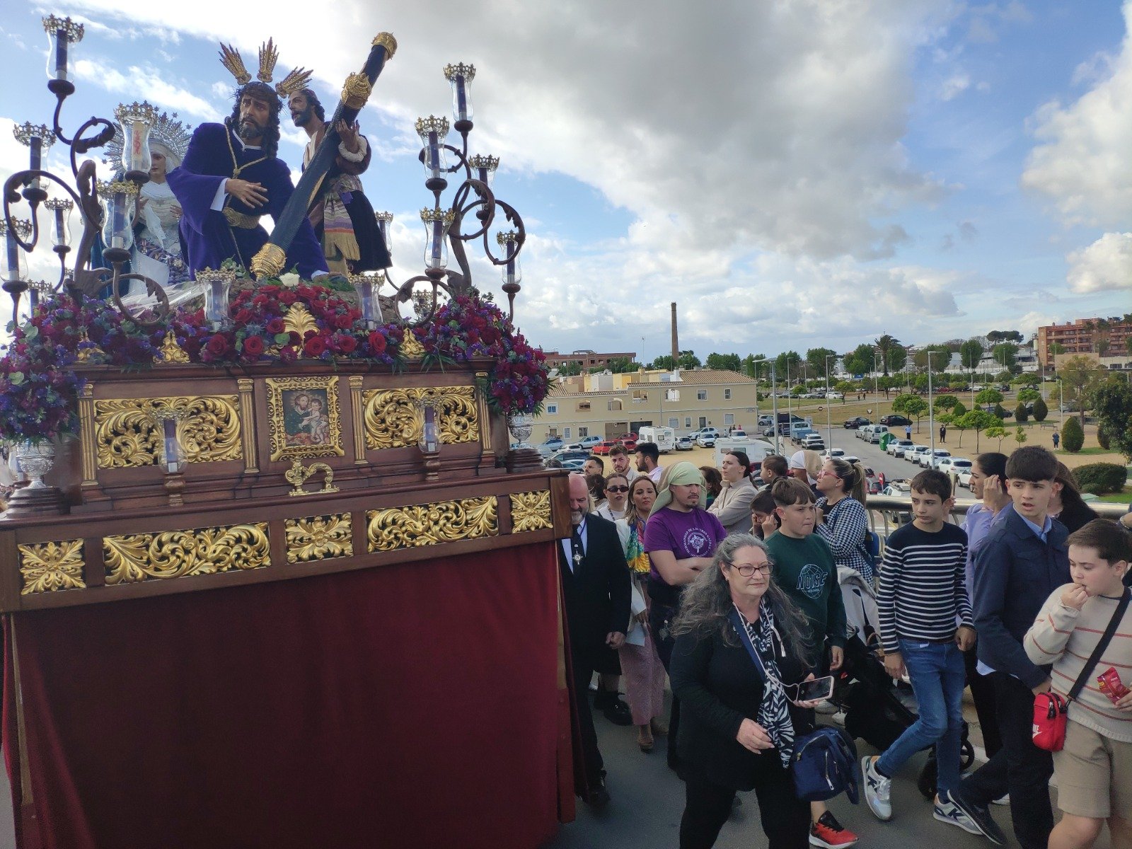 Fue emocionante el discurrir del paso por este puente, que cruzó de una chicotá, sin descanso. A la pregunta del cuerpo de capataces de Fernando Martos Varela de si querían parar, se escuchaba desde debajo de las trabajaderas un «el que diga que sí que no venga el año que viene». Fue una llegada al centro de la ciudad que no se olvidará fácilmente. Mucho público lo esperaba en este punto y los aplausos no cesaron en ningún momento, mientras los costaleros roneaban con el paso y se sucedían las marchas de la Agrupación Musical Nuestra Señora de la Estrella, que también se estrenaba en esta jornada para la historia con esta cofradía.