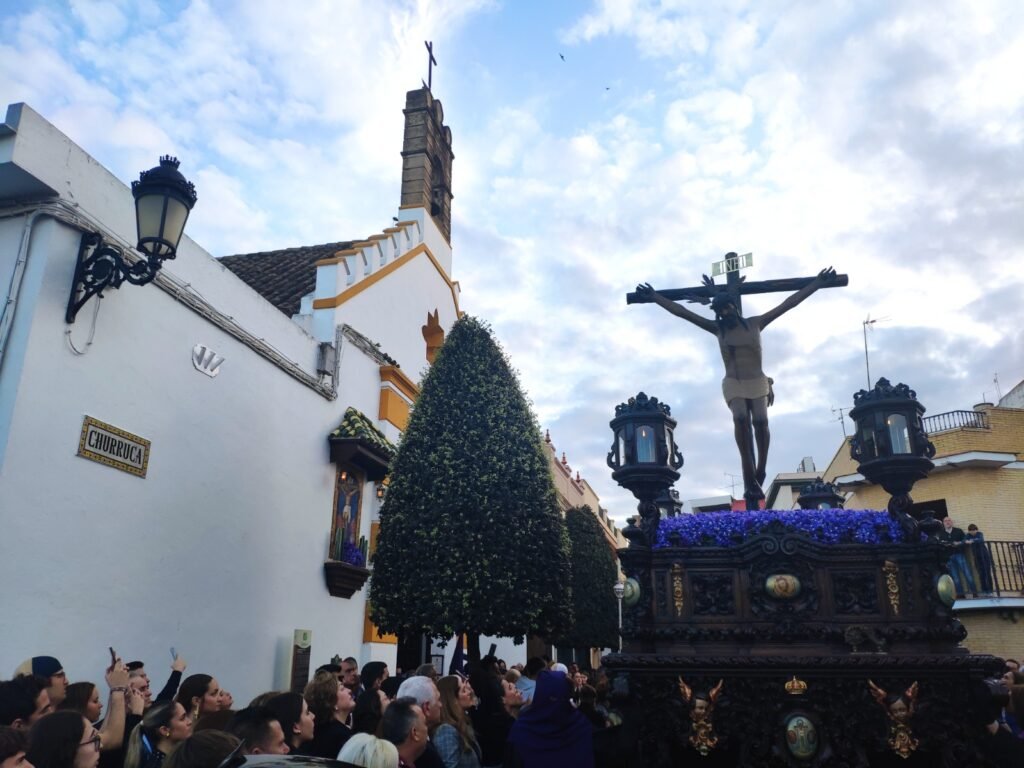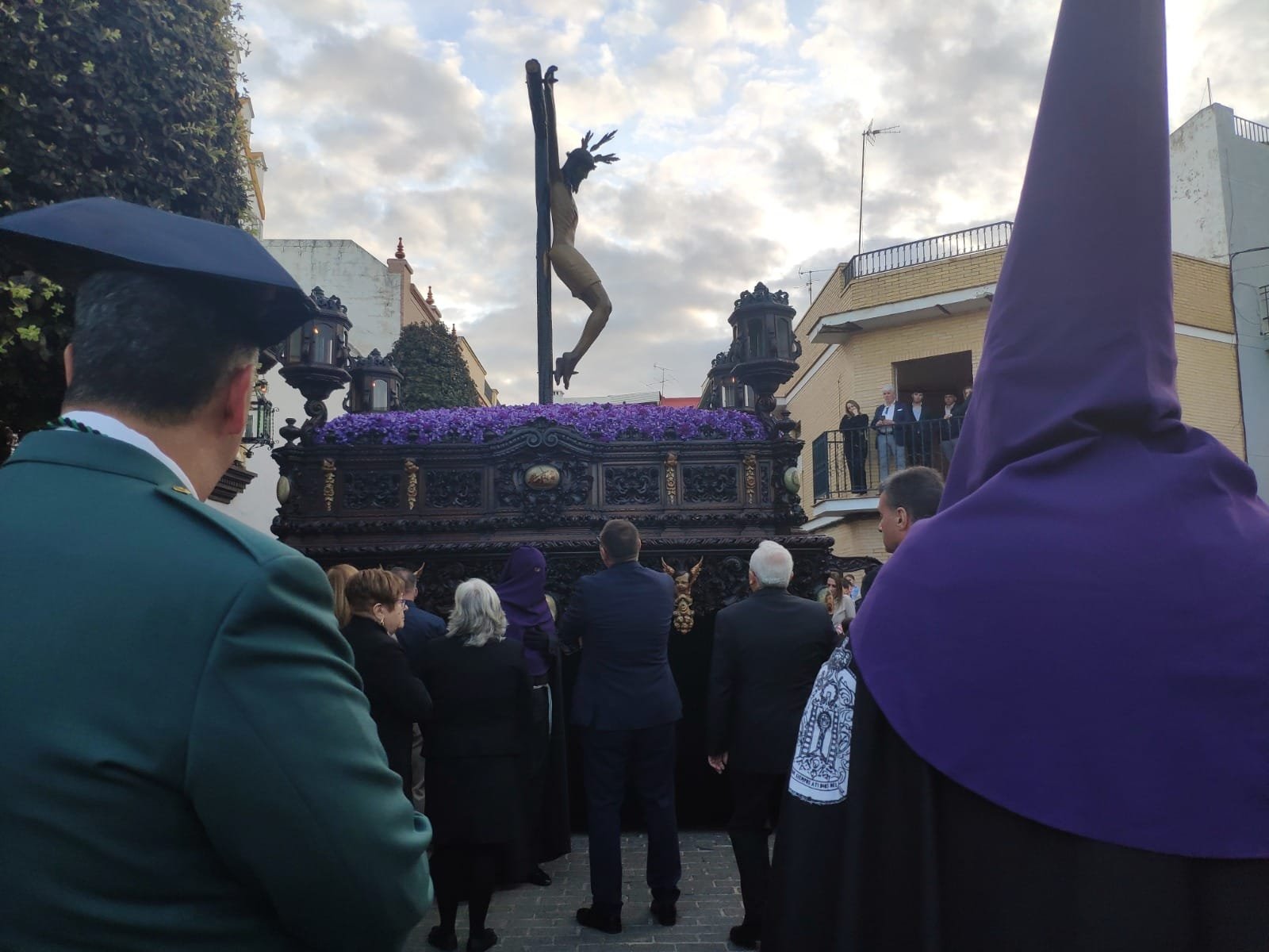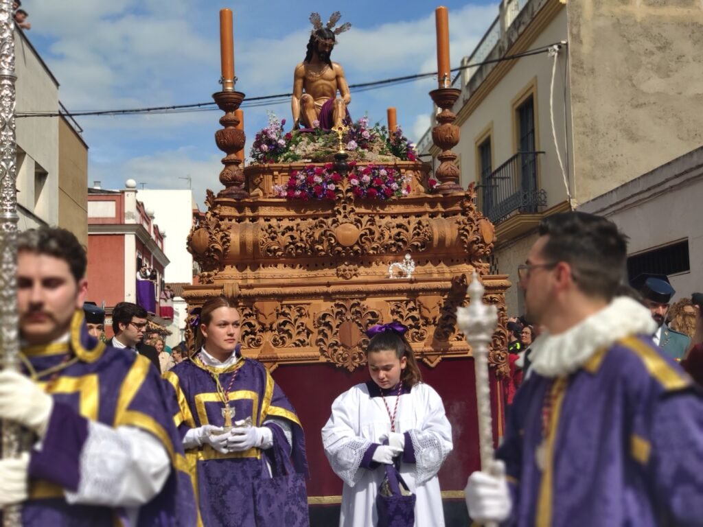 Unos 200 nazarenos acompañaron a sus sagrados titulares durante su procesionar por la ciudad con un itinerario con cambios, sobre todo, a su paso, tras la salida, por la Barriada del Amparo. Tras salir de la calle Los Molares, la cofradía buscó por Las Cabezas de San Juan las calles Camas, Bogotá y Lebrija para llegar por Velázquez a Isaac Peral y encaminarse al centro de la ciudad por San José, Manuel