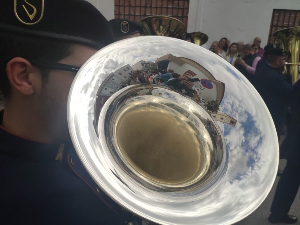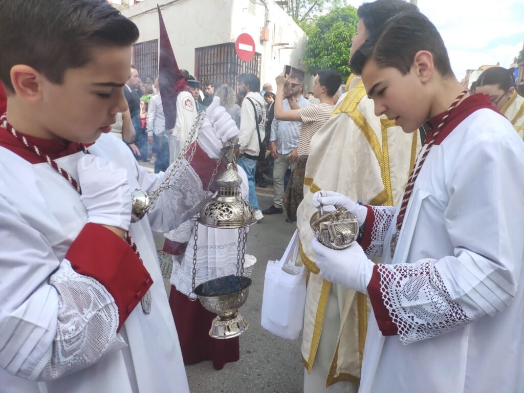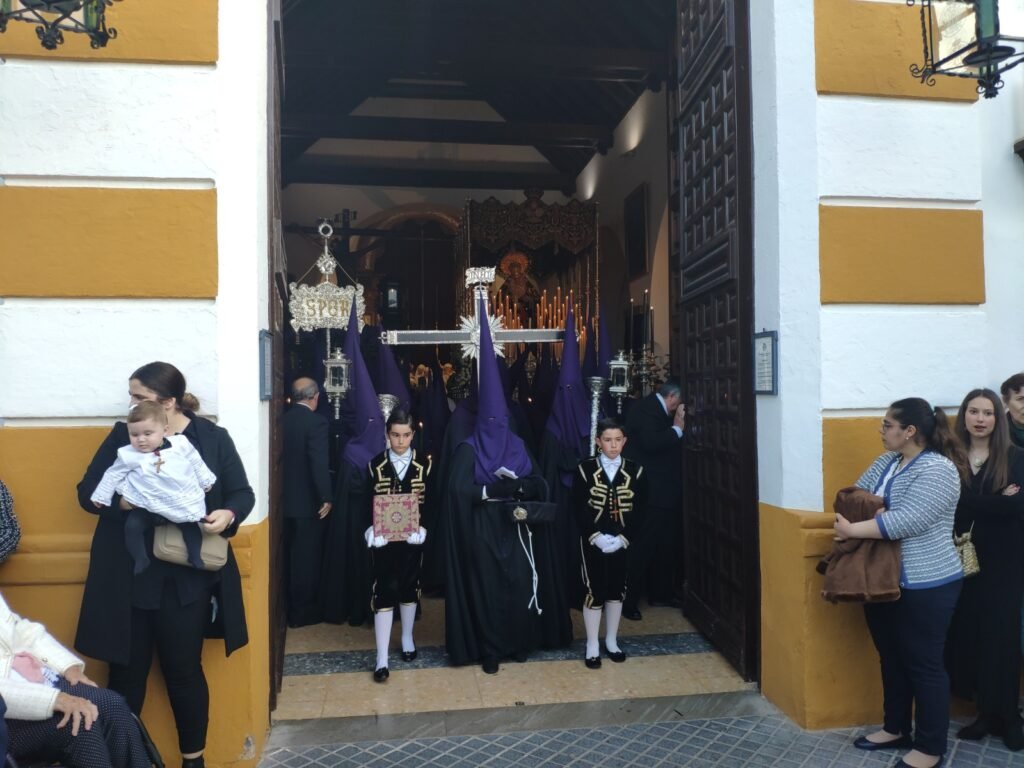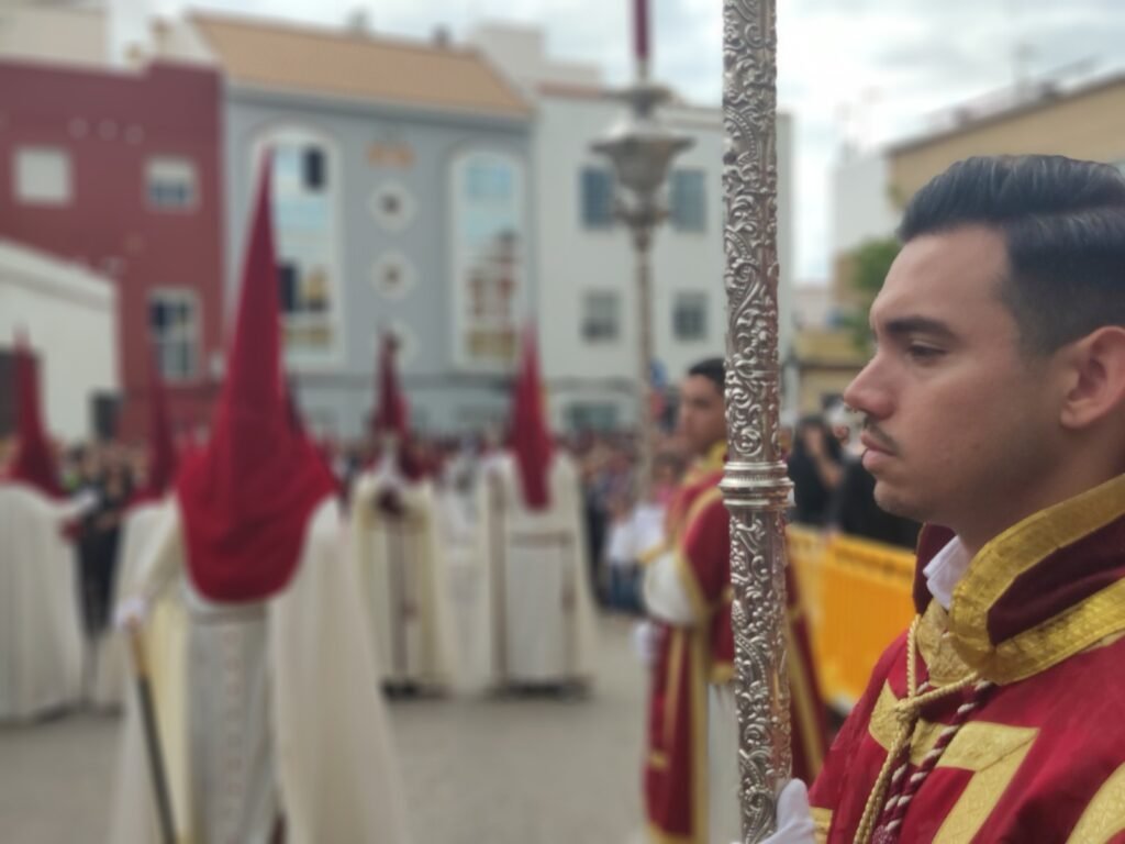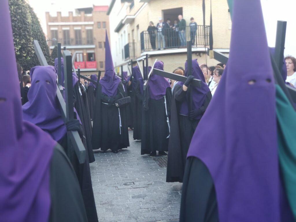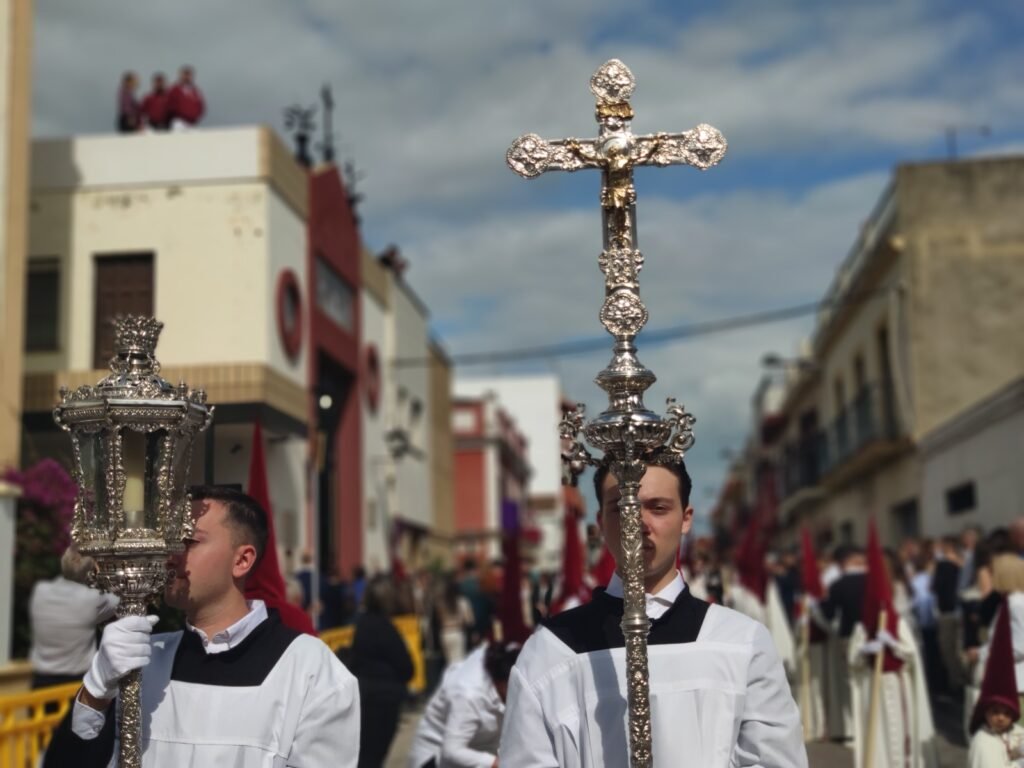 Mientras la Sagrada Cena se presentaba ante la Parroquia de Santa María Magdalena, en otro punto de la ciudad, uno de los enclaves con más historia, Dos Hermanas echaba una mirada al pasado. Las puertas de la Capilla de San Sebastián se abrieron a las ocho de la tarde y comenzaba a salir la Hermandad de la Vera-Cruz. Una de esas hermandades nazarenas que no hay que perderse de principio a fin, por la rectitud y saber estar en la calle de su cortejo y por los detalles que lo integran, como la reliquia del Lignum Crucis, un ostensorio que porta una espina de la Santa Vera-Cruz y que puede besar durante el recorrido de la estación de penitencia.