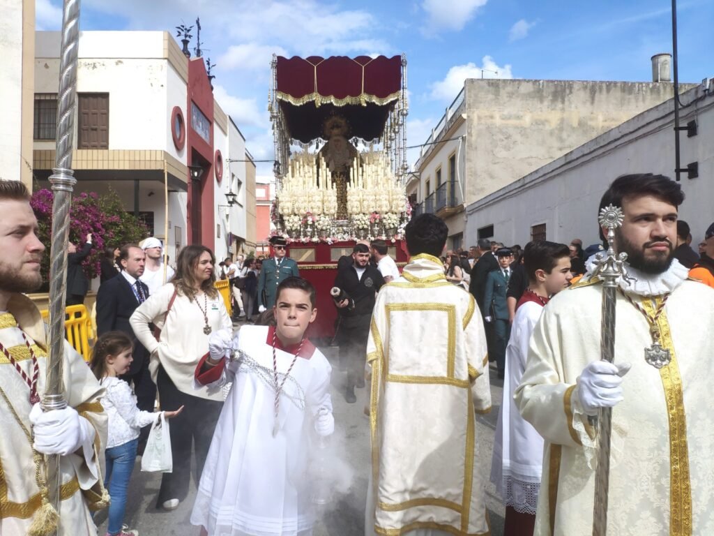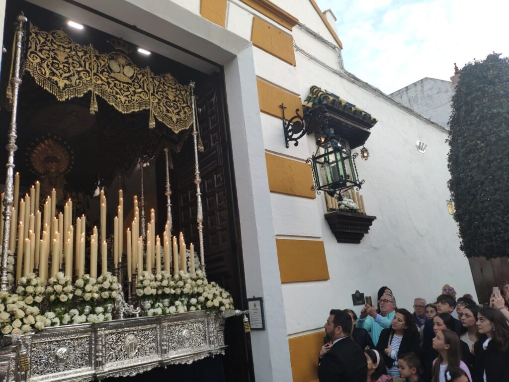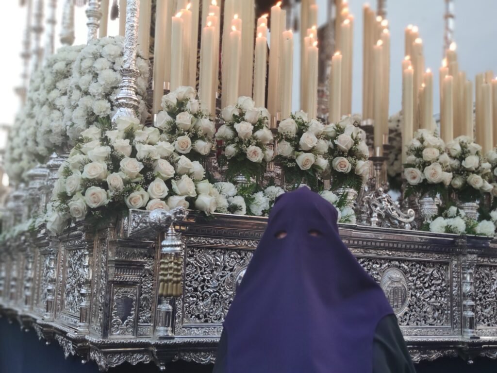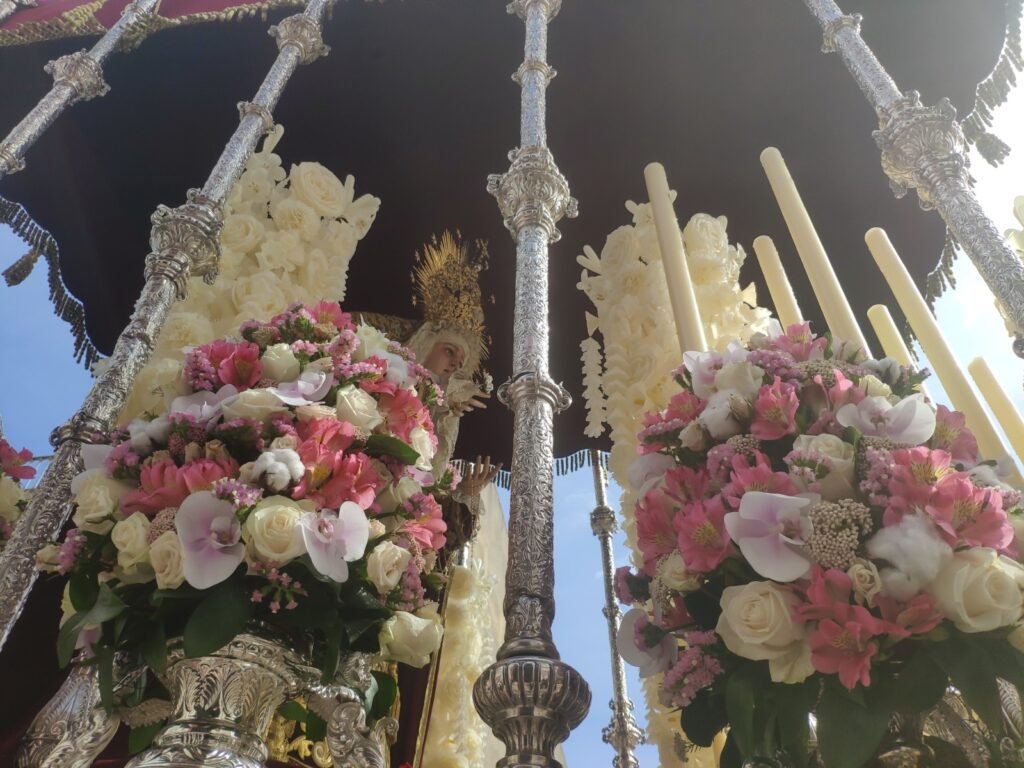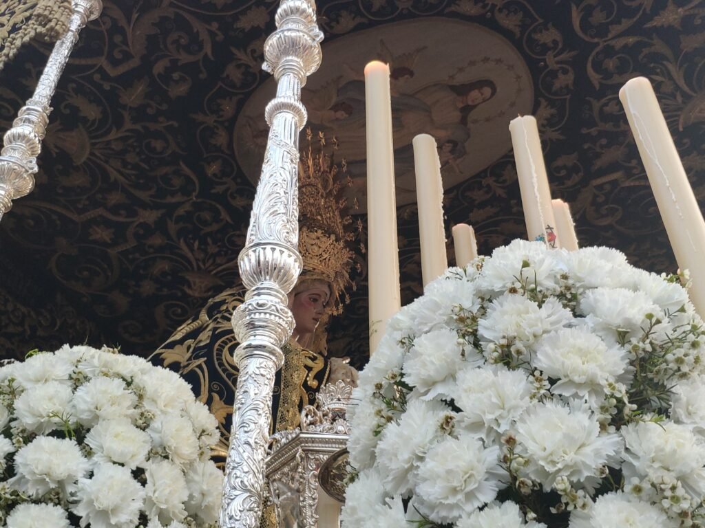 Mientras sonaba Ciudad de Dos Hermanas, como ya es tradicional, los pétalos de flores llovieron sobre el paso de palio, como también cayeron en la esquina de Los cuatro cantillos, otro de los puntos claves de su recorrido, antes de la entrada en Carrera Oficial. De esta forma, la hermandad cumplía con la misión de su estación de penitencia, que no es otra que rezar ante la presencia viva de Jesucristo en el Santísimo Sacramento, reservado en el monumento de Santa María Magdalena.