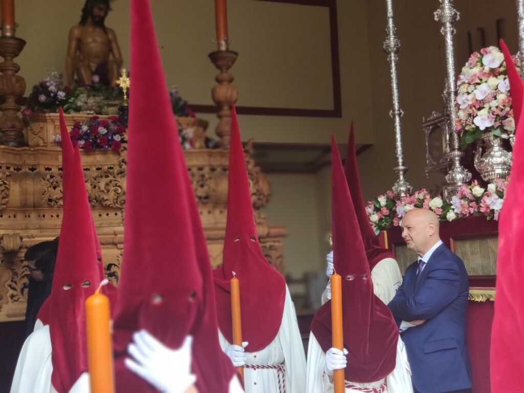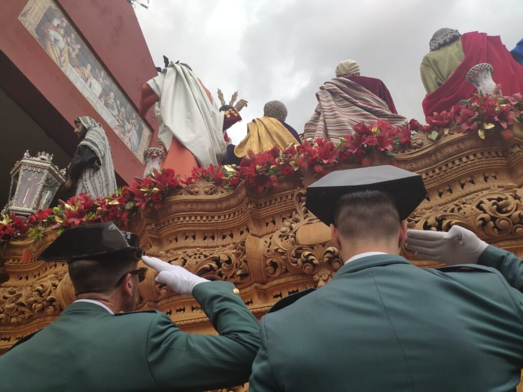 El alcalde de la ciudad, Paco Rodríguez, no quiso perderse la salida de esta hermandad desde el interior de su casa hermandad. El primero de los pasos, el misterio, en el que Jesús, durante la cena pascual con los 12 apóstoles, se anticipa al misterio de la redención, entregándose en cuerpo y sangre.