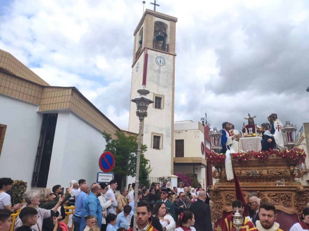 Aunque la lluvia no hizo acto de presencia, no se cumplió el dicho de que el Jueves Santo es uno de los tres jueves que brillan más que el sol cada año. Aunque el astro rey hizo acto de presencia, tímidamente, las nubes ocuparon las primeras filas para disfrutar de la tercera jornada consecutiva con dos cofradías por las calles de Dos Hermanas. La tarde arrancaba en la feligresía de la Parroquia del Amparo, en la calle La Hacendita, desde donde volvió a hacer estación de penitencia la Hermandad de la Sagrada Cena un nuevo Jueves Santo.