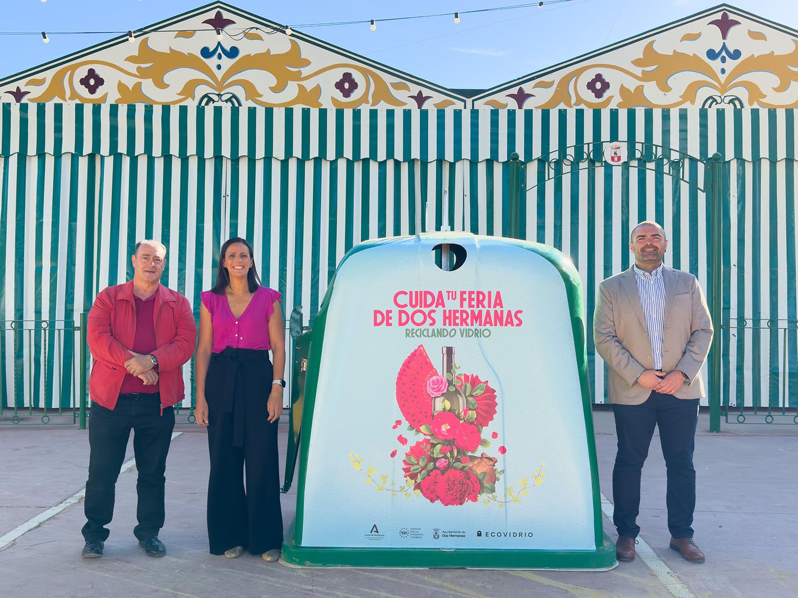 El Ayuntamiento de Dos Hermanas y Ecovidrio, ponen en marcha la campaña Cuida tu feria de Dos Hermanas reciclando vidrio para fomentar el reciclado de los envases de vidrio durante la Feria 2025.