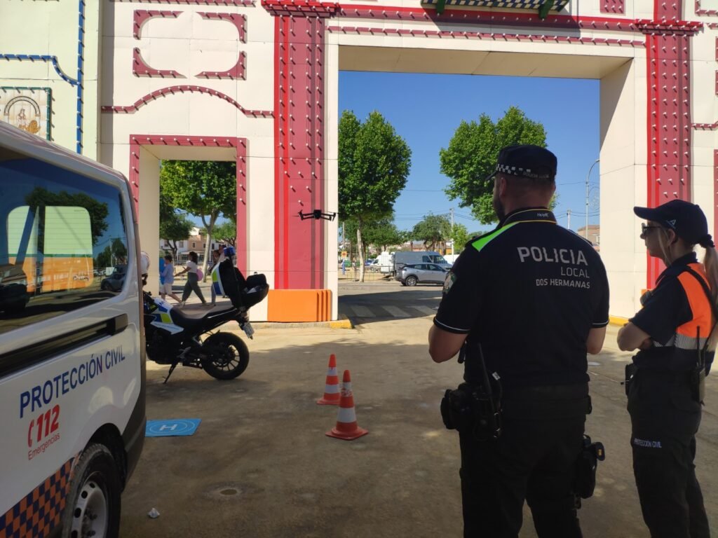 La jornada del domingo es la de la despedida. A pesar del calor, la feria vivió una tarde animada de público, que se acerca al recinto ferial para disfrutar con el castillo de fuegos artificiales, que pone fin a esta celebración. Una tarde en la que la Policía Local, con el apoyo de Protección Civil, volvió a volar el dron por el entorno del recinto, como una nueva herramienta que se suma al dispositivo de seguridad.