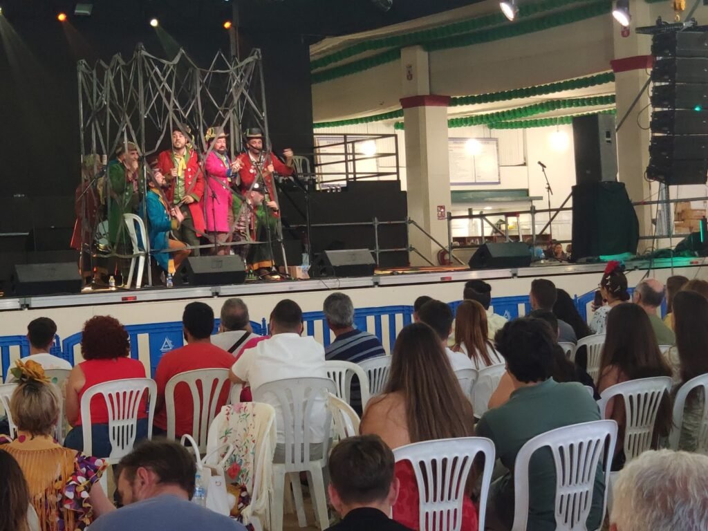 Por ello, la caseta municipal registró un buen aforo de público al final de la tarde para ver sobre el escenario a la chirigota de Écija, Al cielo con él. Fue la actuación con la que se cerró una programación que ha vuelto a estar marcada por la notoria presencia de artistas y grupos de la ciudad, además de primeras figuras del panorama musical nacional.