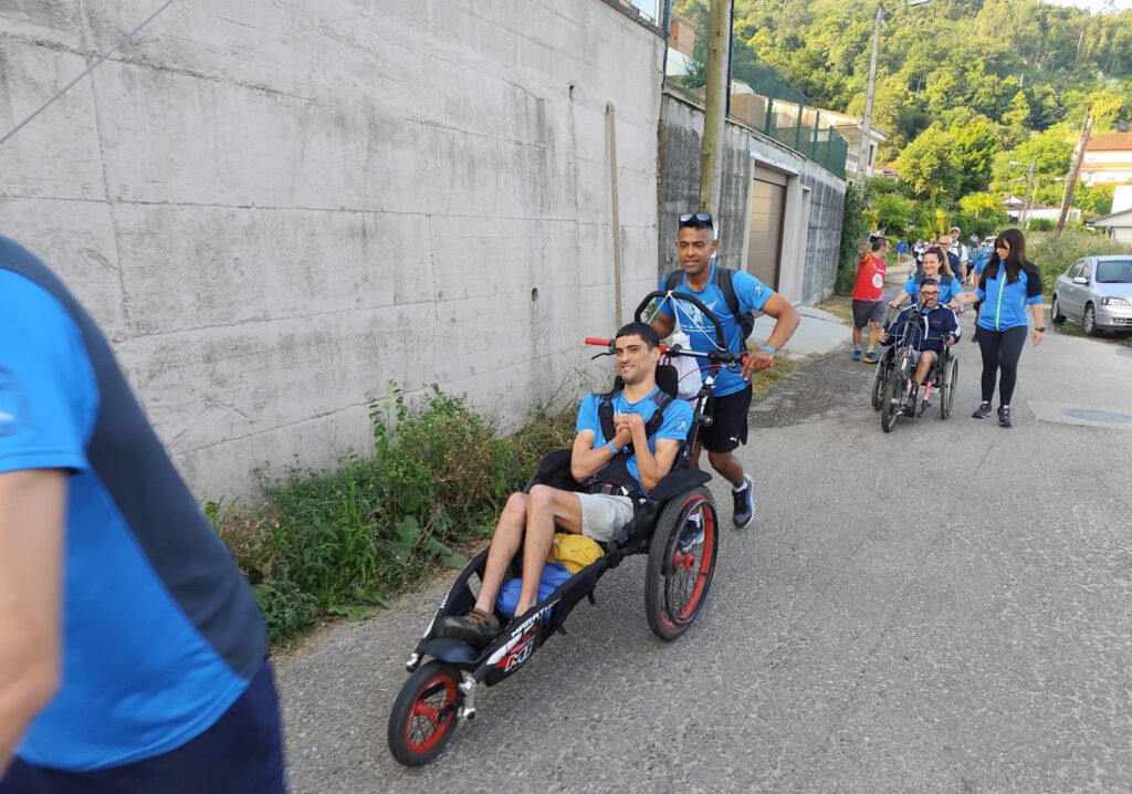 Aspace Sevilla ha completado con éxito el IV Todos los Ángeles Vuelan, proyecto que persigue que personas con parálisis cerebral puedan cumplir el reto de hacer el Camino de Santiago. Siete personas usuarias de este centro en Dos Hermanas, cuatro chicos y tres chicas se han sumado a esta edición, portados en sillas handbike, hippocampes y joëlette por un grupo de nueve voluntarios porteadores y cuatro profesionales de Aspace.