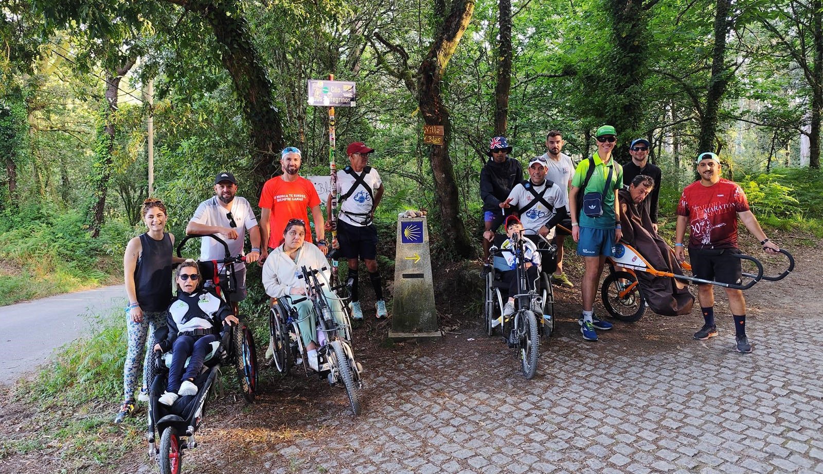 Ricardo, Luis, Laura, Cristina, Carlos, Alba y Fernando partieron el pasado día 20 de junio desde Dos Hermanas y, tras probar las sillas en Vigo, el día 21, con la asociación Discamino, iniciaron el Camino de Santiago el domingo, día 22.