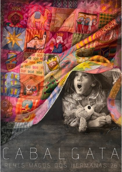 En una particular puesta en escena, en la que ha representado el niño que llevamos dentro, ha descubierto su cartel: una escena plástica del sueño de cada noche de Reyes y en el que la simbología se hace realidad.