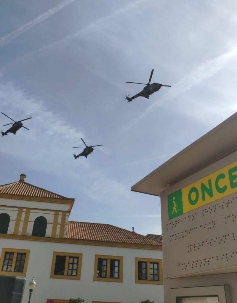 El broche de oro a esta celebración lo puso el desfile de más de un centenar de militares terrestres, con escuadra de lanzadores, compañías de vuelo, compañías de honor y banda de música. Además de la presencia aérea de tres helicópteros Cougar con formación de cuña en el aire”.