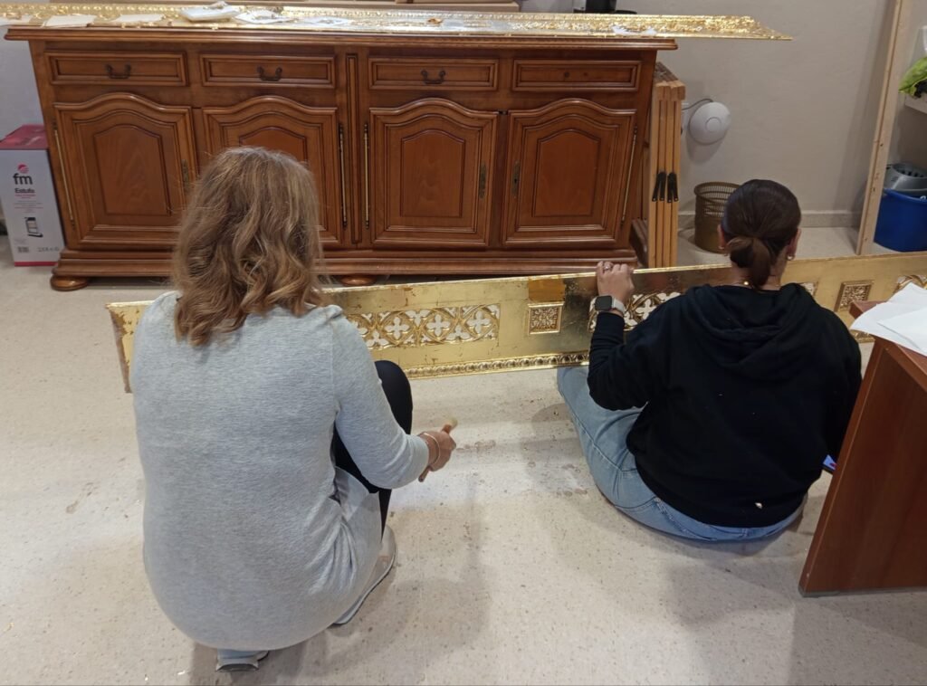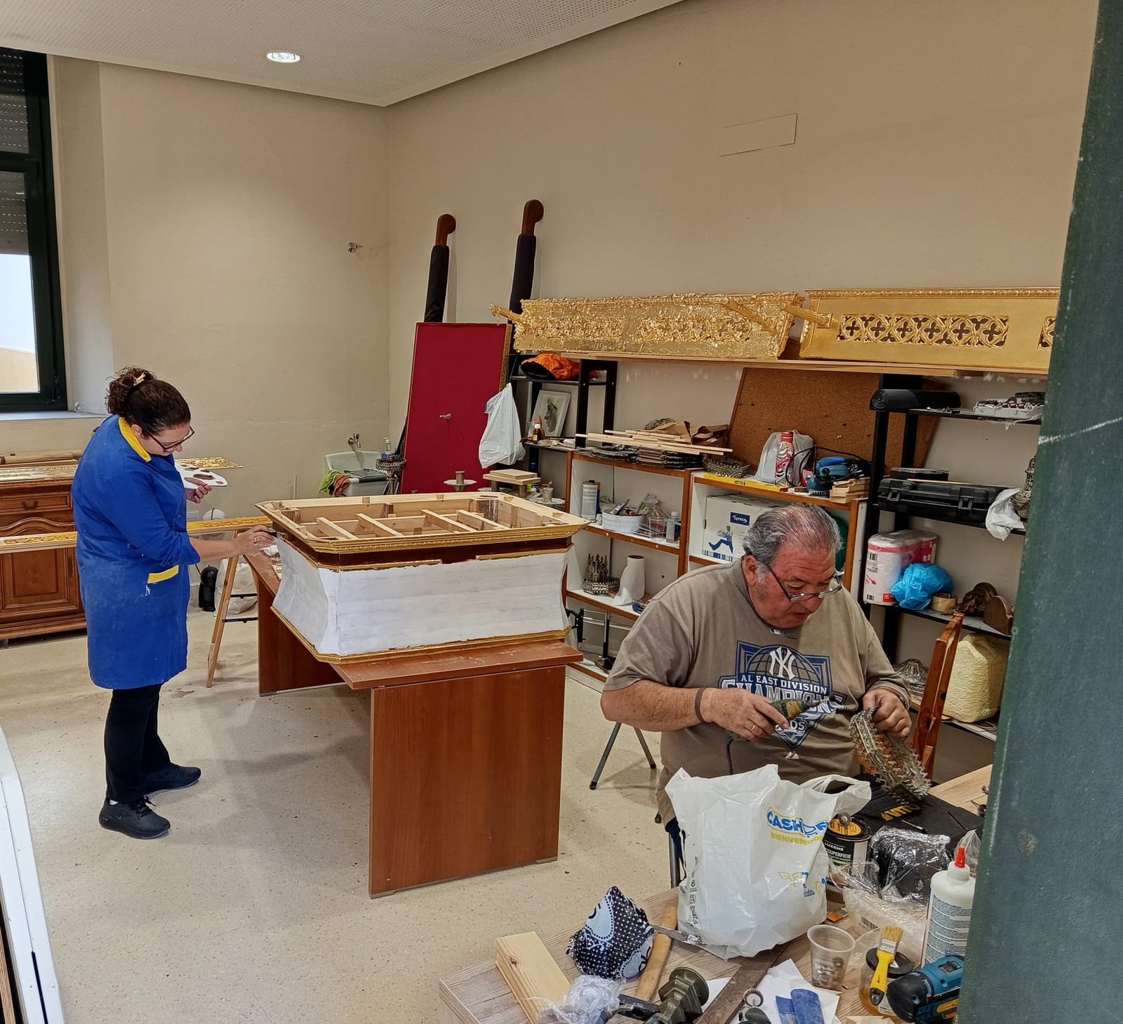 El paso del Beato Bienvenido María de Dos Hermanas sigue avanzando en su realización, con el dorado de los respiraderos, corrección de los faldones y hechura de la nueva peana de madera policromada, que combina marmoreados en consonancia con las tonalidades de los propios faldones con molduras doradas y rematada por un corazón de los Siete Dolores de Nuestra Señora. También cuenta con un flamante nuevo llamador, obra del orfebre local Juan Lozano y regalado por la Hermandad de la Oración en el Huerto como prueba de su estrecha vinculación con la Orden de Terciarios Capuchinos.