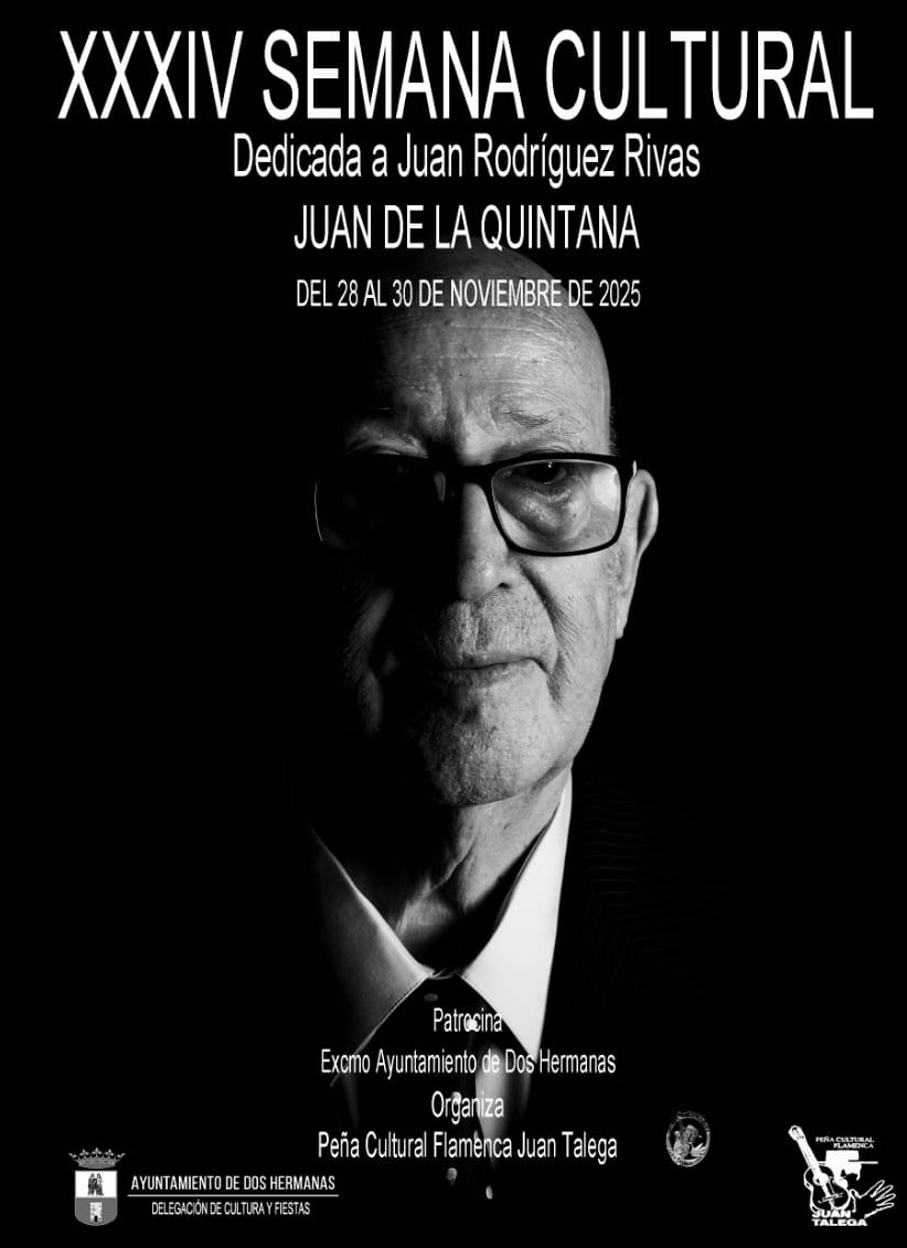 La Peña Flamenca Juan Talega celebra la semana próxima su XXXIV Semana Cultural que estará dedicada a la figura de Juan Rodríguez Rivas ‘Juan de la Quintana’. Tendrá lugar los días 28, 29 y 30 en sus dependencias de la Casa del Arte.