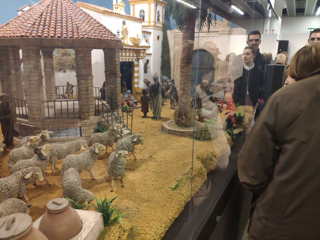 Aunque «en mi casa está muy bonito y entra mucha gente», poder exponerlo en este espacio, explicó el belenista, «es todo un privilegio para mí». En este Belén Nazareno, de 4,5 metros de ancho y unos 4 metros de fondo, se estrena este año la casa hermandad del Rocío de Dos Hermanas en la aldea almonteña, que se suma a otras casas de hermandad o capillas que aparecen en este poblado, como las de Cautivo, Amargura, Gran Poder u Oración en el Huerto, además de la Capilla de San Sebastián, la Parroquia de Santa María Magdalena o la Ermita de Cuarto con la carreta de la Virgen de Valme en la puerta. Además de diferentes motivos que se encuentran en el Parque municipal de La Alquería o la Plaza del Arenal.