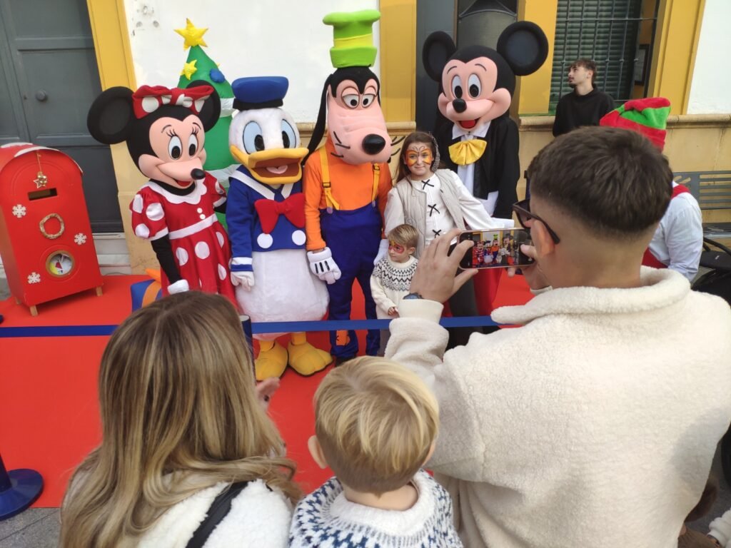 A partir de las 17:00 horas, en diferentes puntos de la plaza, se instalaron dos photocall navideños, uno de ellos animado por personajes de la factoria Disney, como Mickey Mouse, Minie, Pato Donald y Pluto. También hubo un punto de globoflexia y otro de pintacaras, que fueron acumulando largas horas a lo largo de la tarde.