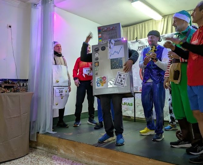 La Memoria USB consiguió la distinción al mejor disfraz masculino y el vikingo, el segundo premio de esta modalidad. Papá Noel y sus renos fue el mejor disfraz de grupo y Los guiris se llevaron el premio a la animación. También se entregó un premio al Club Carros de Fuego, que une en cada competición a atletas con carros asistidos, por su participación en esta cita navideña.