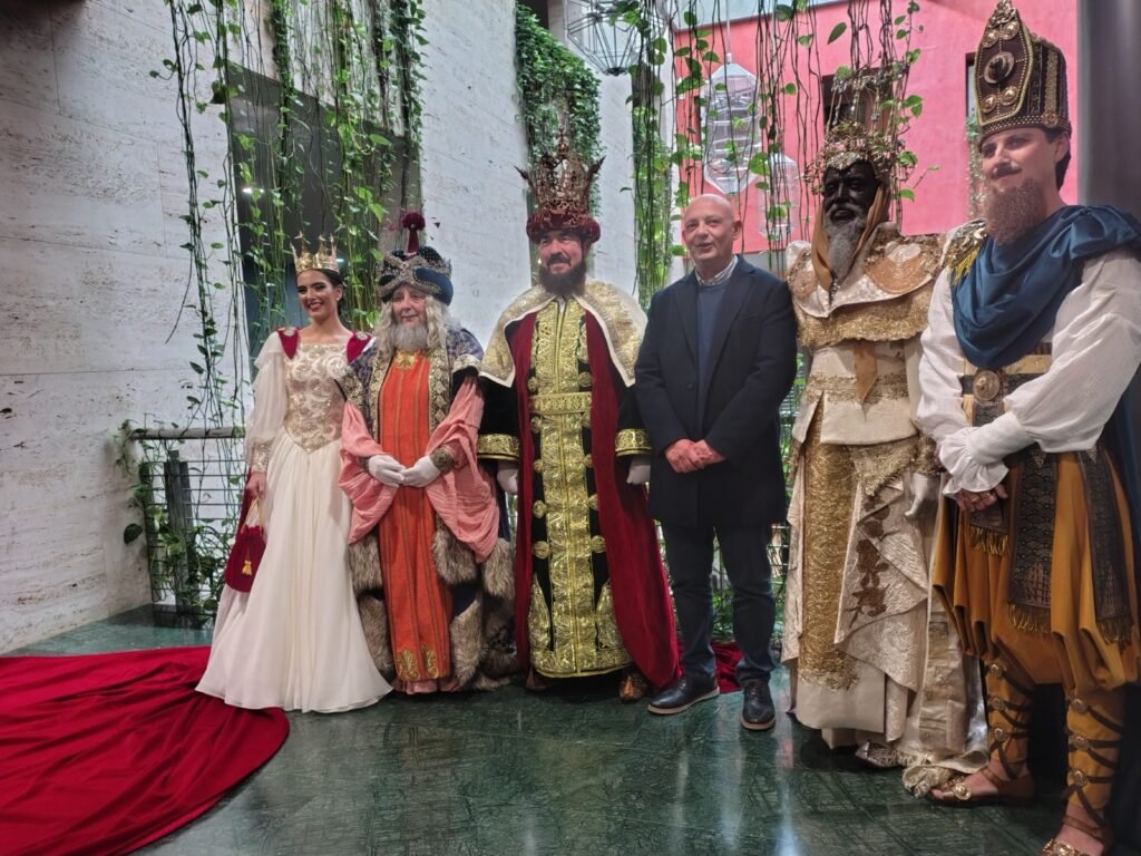 Tras el saludo oficial, cada uno de ellos fue saliendo del Ayuntamiento para saludar al público presente, entregarles algunos dulces regalos y subirse al coche de caballo que los transportó a la sede de la Asociación Pro-Cabalgata de Reyes Magos Estrella de la Ilusión, donde los esperaban los 400 niños y niñas que se subieran en algunas de las 12 carrozas temáticas del cortejo, que en esta edición estuvieron dedicadas a las cuatro estaciones del año.