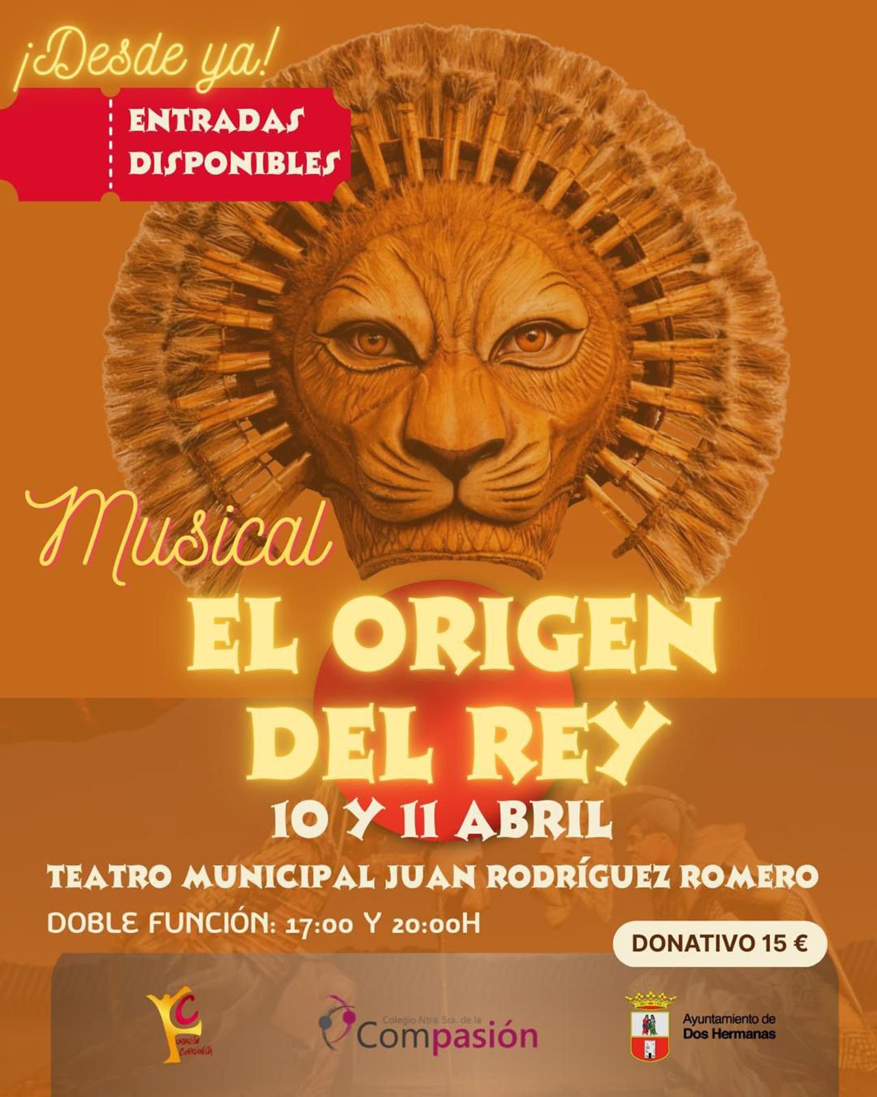 La Fundación Compasionista está llevando a escena el musical El origen del Rey, un espectáculo lleno de música, emoción y valores que se representará los días 10 y 11 de abril en el Teatro Municipal Juan Rodríguez Romero, con doble función diaria a las 17:00 y a las 20:00 horas.