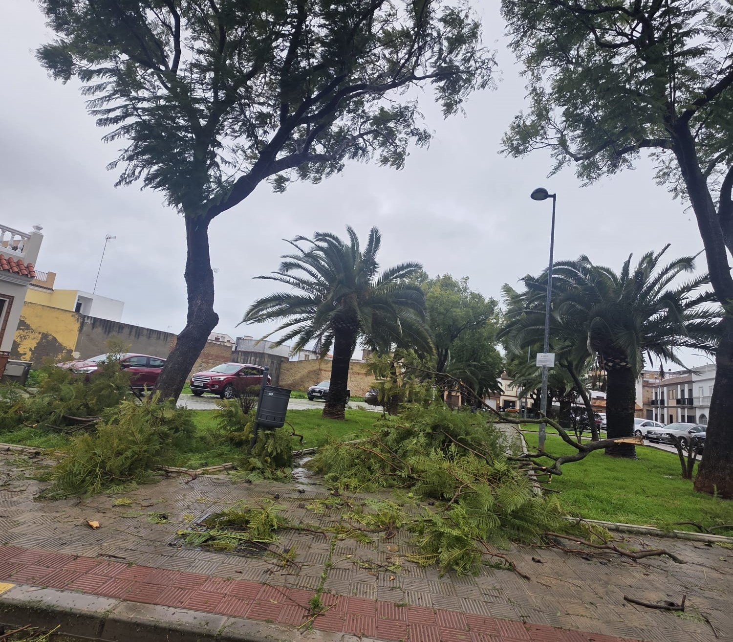 También se cayó un depósito de agua en el interior de una vivienda en Residencial Motilla Nova; placas solares desprendidas en la calle Marcelo Spínola; azulejos caídos en la calle Lope de Vega, esquina con callejón Rosario; cornisas sueltas o caídas en las calles Carlos Benítez Saurel y Herberos y en la Avenida de Los Pirralos.