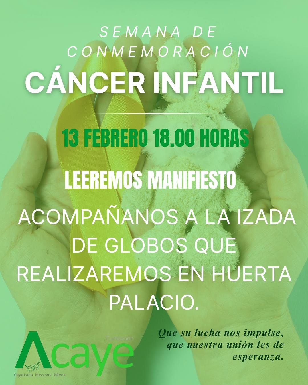 Con motivo del Día Internacional del Cáncer Infantil (15 de febrero), la fundación ACAYE ha organizado un evento conmemorativo especial en Dos Hermanas. Con el objetivo de maximizar la visibilidad y fomentar la concienciación entre los más jóvenes, la actividad se adelantará al viernes, día 13, a partir de las 18:00 horas en Huerta Palacios.