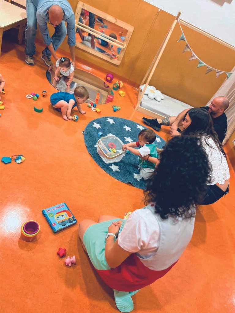 Aquí, el educador es un compañero de viaje que, desde una observación cariñosa y activa, crea el ambiente perfecto para que los pequeños manipulen, rían, se relacionen y se comuniquen. Cada educador aporta su chispa al equipo creativo y, juntos, diseñan nuevas experiencias a medida. «Es un trabajo vivo que ajustamos con mimo a lo que cada grupo de pequeños necesita en cada momento», asegura la coordinadora.