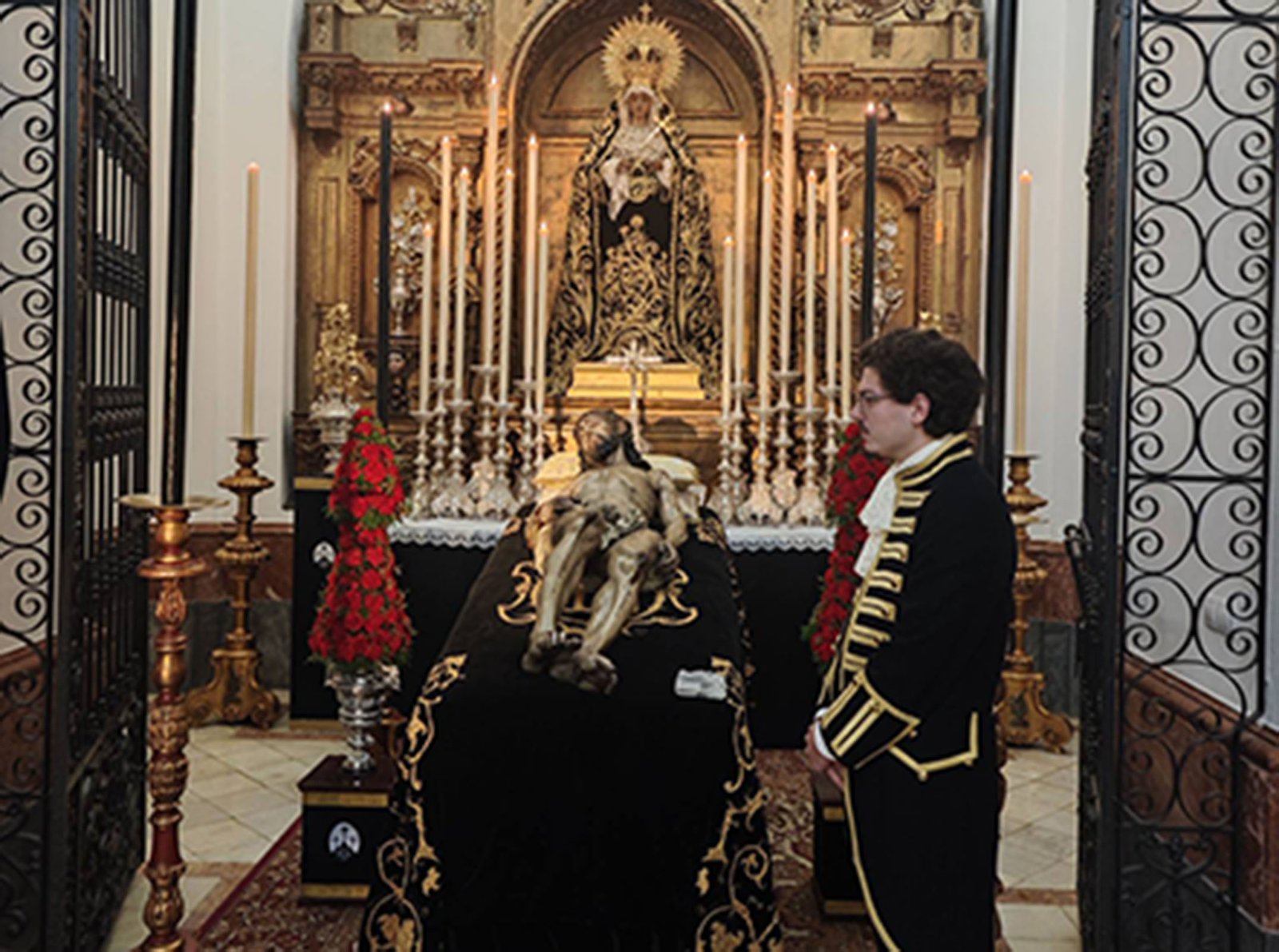 La imagen del Cristo Yacente de la Hermandad de Santo Entierro estuvo expuesto el pasado domingo, día 15, en devoto Besapié en su capilla de la Parroquia de Santa María Magdalena. Tras la misa de hermandad, se llevó a cabo el Ejercicio de las Cinco Llagas con el acompañamiento de la Capilla Musical de Sevilla y el rezo a cargo de Antonio José Ortega Avilés, pregonero de Semana Santa.