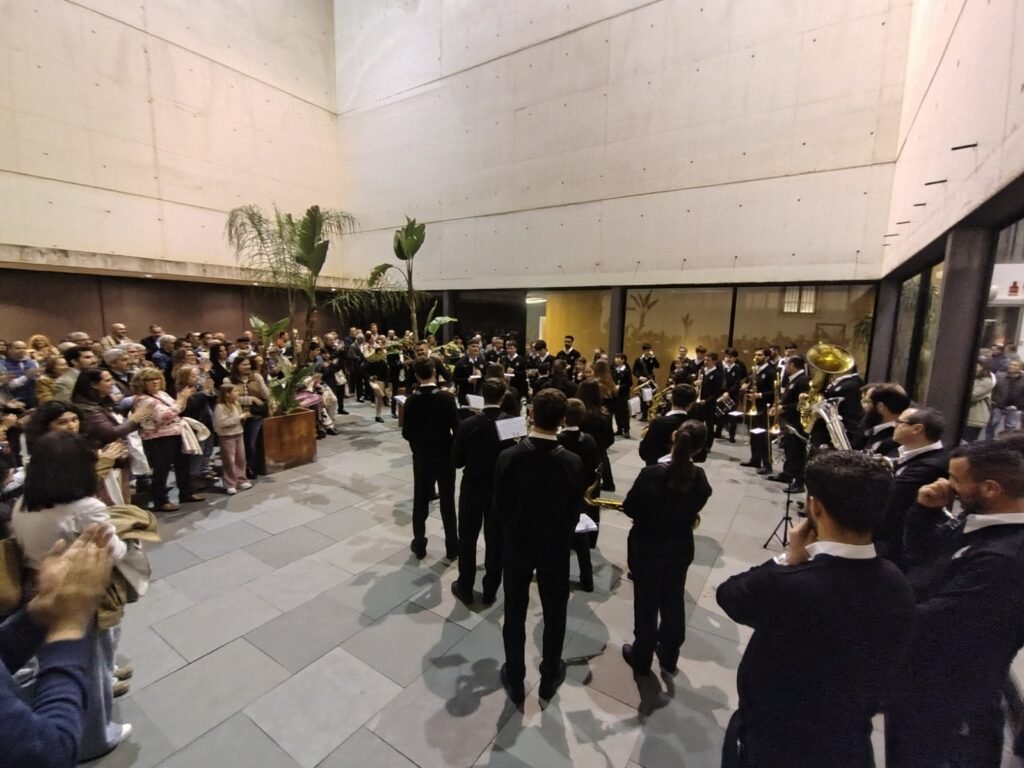 Previo a la inauguración de la exposición, la Banda juvenil de Dos Hermanas Santa Ana amenizó la espera con la interpretación de diferentes marchas procesionales.
