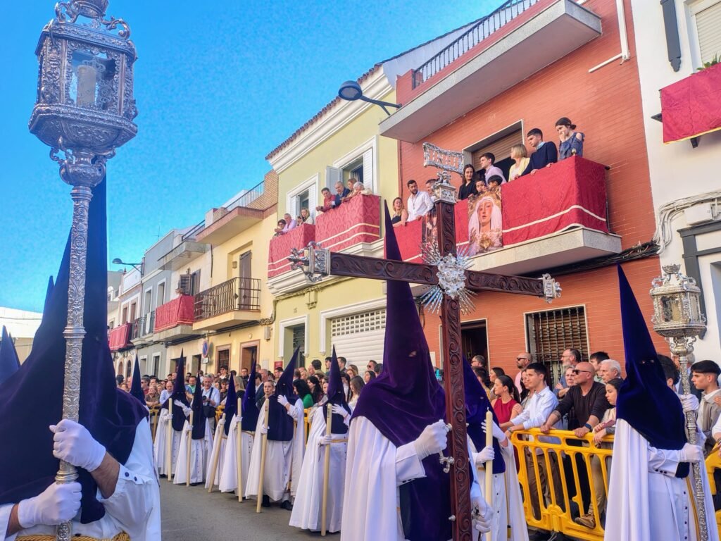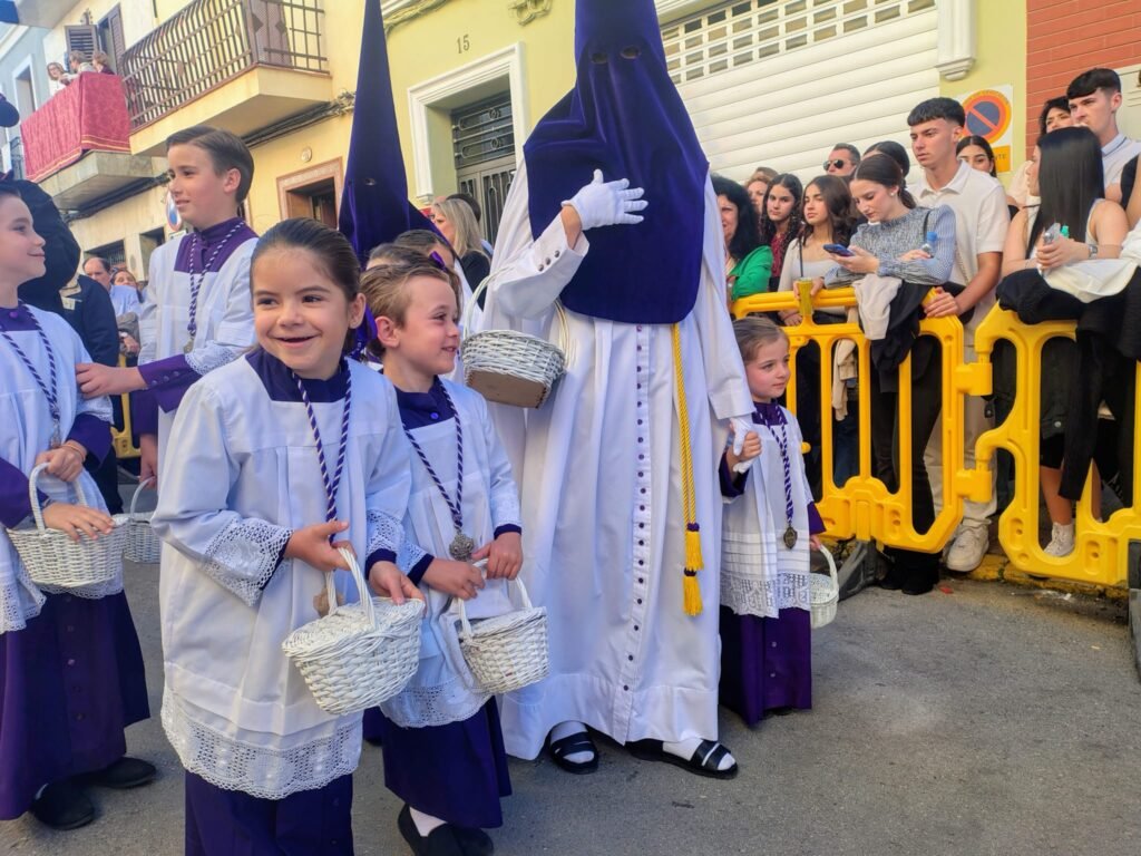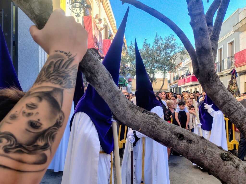 Todo es clasicismo en esta hermandad cuando procesiona con sus nazarenos de túnica blanca y antifaz morado. La Agrupación Musical Ntra. Sra. de la Estrella contribuye a ello, rescatando sonidos de antaño con marchas como La muerte no es el final, desde el interior de la casa hermandad, Orando al Padre o Concepción, que envolvieron la salida del misterio.
