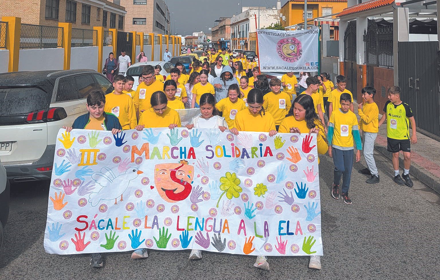 Cuatro colegios de la misma zona: El Palmarillo, Cervantes, Vicente Aleixandre y El Amparo, se han unido para colaborar con la asociación Saca la lengua a la ELA. Para ello, caminan juntos con el objetivo de apoyar la investigación de esta enfermedad. Los fondos recaudados, 1.642 euros, serán destinados íntegramente a proyectos que mejoran la calidad de vida de los pacientes y a la búsqueda de una cura.